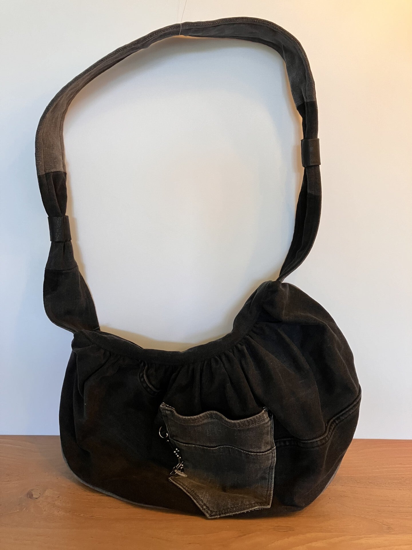 De grootste tas van de collectie. De tas is ca. 40x22cm heeft schouderband van 80cm. Deze tas is voorzien van binnenzakken en is gevoerd. Daarnaast heeft de tas een speciale behandeling gehad waardoor deze vuil- en water-afstotend is.