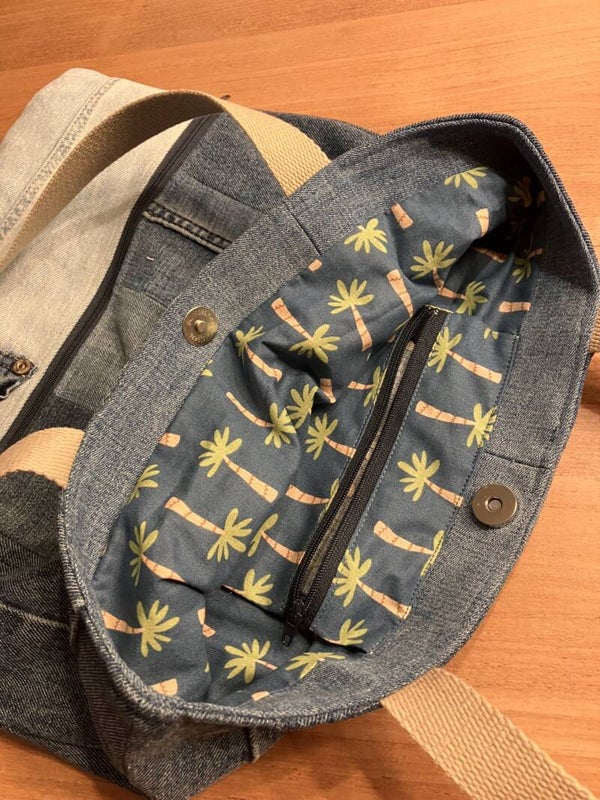 Een fashion draagtas (40x34x15) met een vaste schouderband (76cm), Deze tas is voorzien van zowel een buitenzak in de volle breedte als een kleinere binnenzak, beiden met rits. De tas is gevoerd met een vrolijke katoenen stof. Als speciale item is aan de binnenkant een musketonhaak bevestigd, zodat ook een sleutel makkelijk aan de tas vastgemaakt kan worden. Tot slot zit aan de binnenkant van de tas een magneetsluiting.